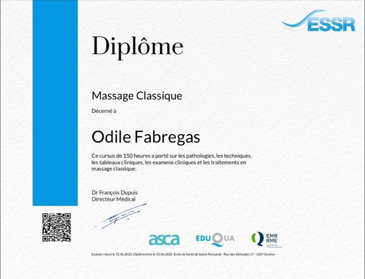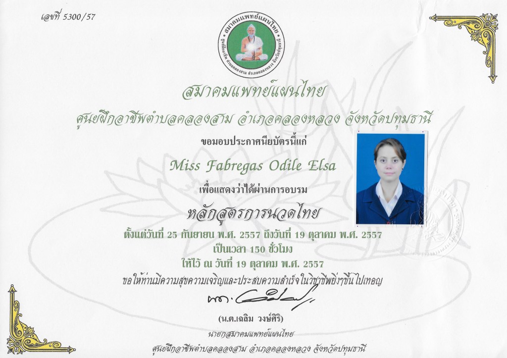 Certificat de Massage traditionnel thaïlandais
